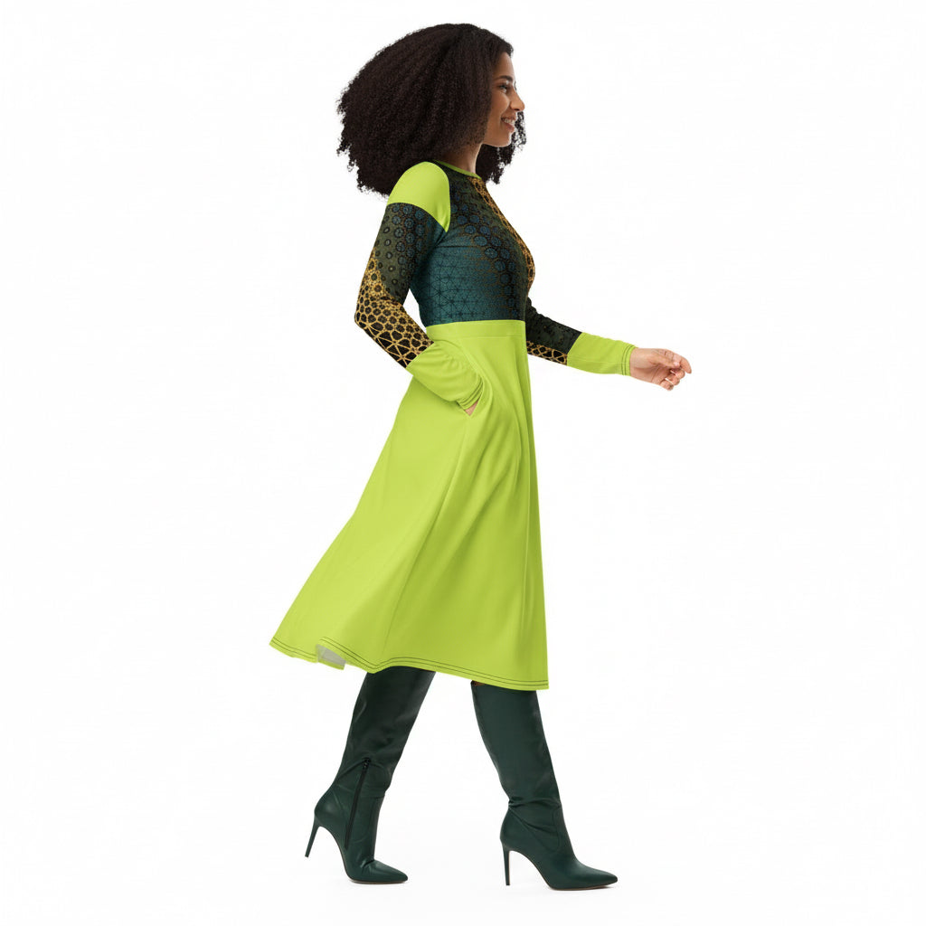 Long Sleeve Midi Dress Solid and Peach Fuzz Floral